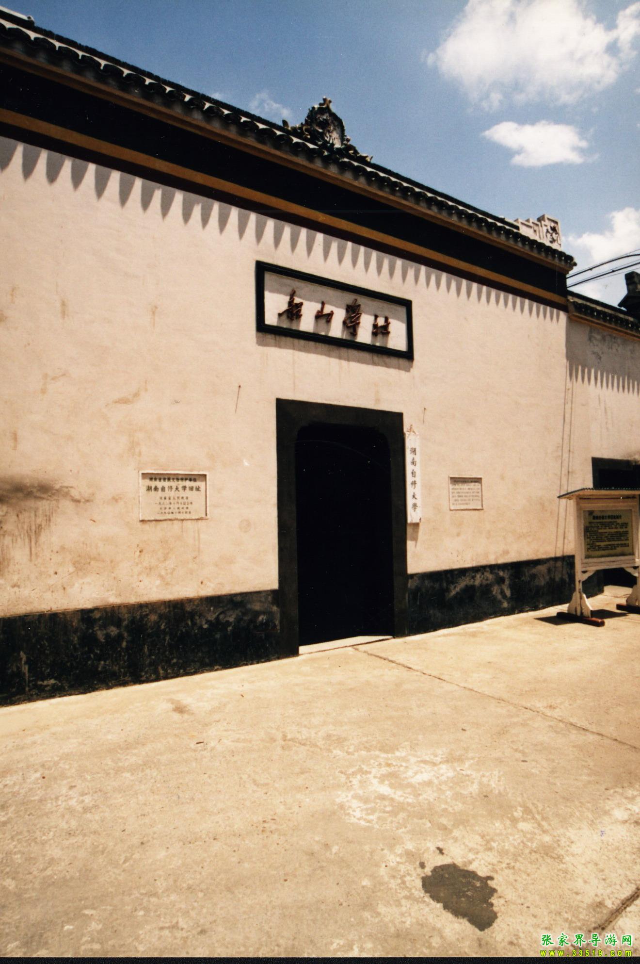 湖南自修大學舊址在中山東路263號,原為曾國藩祠的一部分。光緒初,郭嵩燾在此創(chuàng)辦思賢講舍。1912年劉人熙將其易名為船山學社。1921年8月,毛澤東、何叔衡于中共“一大”后,取得社長仇亦山,總干事王季范等同意,在此創(chuàng)辦湖南自修大學,李達為首任校長。