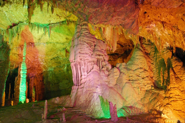 “天堂”精彩紛呈,美不勝收,,有大的景點(diǎn)32處。溶性碳酸鹽巖在漫長的歲月里,變幻出多姿百態(tài),豐韻萬千的眾多造型,為“天堂”造就了美妙絕倫的意境。“南天門”高聳入云,“仙女出浴”百媚千嬌,“御筆天書”維妙維肖,“凌霄殿”虛無縹緲,“玉樹瓊花”繁花似錦,“逍遙宮”如詩如,“瑤池”銀波蕩漾,“紫宵宮”三門雄關(guān),“百鳥朝鳳”令人神往,“廣寒宮”寬闊空寂,……“天堂”面積5000多平方米,除了32處大景點(diǎn),還有浩如星辰,不勝枚數(shù)的眾多小景點(diǎn)。它們一起構(gòu)成了“天堂”那峰回路轉(zhuǎn)、光怪陸離,既寬闊幽遠(yuǎn),又雄偉莊嚴(yán),且瑰麗奇妙的無邊美景。