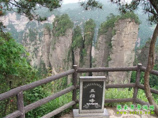 “橫看成嶺側(cè)成峰”,換一個(gè)角度來(lái)看摘星臺(tái)上望到的那一片山峰。其中五支石峰一字排開(kāi),形狀好像手指。當(dāng)?shù)厝苏f(shuō)這是如來(lái)佛的手指——其實(shí)更像我們自己的手指,我們相象中的手指,大自然的“手指”——這些美景、奇景,本來(lái)就是出自大自然之手。