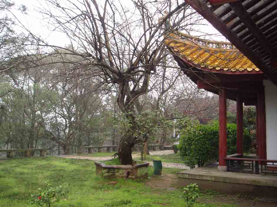 酒香亭在君山中部的酒香山峰上,掩映在翠竹藤蔓之中。入亭小憩,不僅鳥語花香,更有一股隱隱酒香撲鼻。原來此山中生長著一種開黃色小花的青藤,花香帶著酒味,這種藤叫酒泉藤,傳說用藤上小花釀的酒,喝了長生不老,可以成仙,這事傳到漢武帝耳里,他便派使臣欒巴率領男女數(shù)十人趕來君山,取回了仙酒。酒到京城,卻被當時能言善辯的臣子東方朔偷飲了。漢武帝得知,“龍顏”大怒,要將東方朔斬首。東方朔不慌不忙地奏道:“如果喝了此酒真會長生不老,可以成仙,皇上就殺我不死,如果臣被殺死了,此酒皇上喝了也不會長生不老。”武帝無言以對,便赦免了他。這事傳到了君山,人們便在酒香山修了酒香亭,以為紀念。如今的此亭,為一九八一年恢復,占地近三十二平方米,高六米余,為四柱方形、磚石木混合結構,古香古色,富有詩意。