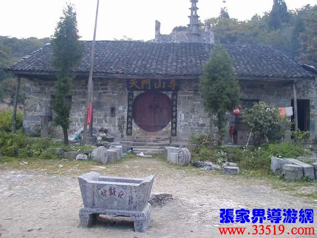 (天門山寺)天門山寺最早建于唐代,古稱云缽庵、靈泉院、嵩梁堂,明代時(shí),因擇址不當(dāng)而屢遭風(fēng)摧又常遭水荒,才將天門山寺從東部山頂遷移至此。以前這里古木參天,濃蔭蔽日。古寺門楣上刻有“天門仙山”四字,大門兩邊的對(duì)聯(lián)是:“天外有天天不夜,山上無(wú)山山獨(dú)尊”,傳為李自成部將野拂撰書。進(jìn)門為大佛殿后面有觀音堂,兩邊六間平房,最后一棟是祖師殿,規(guī)模宏大。民間概括為“三進(jìn)堂、六耳房,磚墻鐵瓦鍋如壙”。山寺原建筑十分講究,飛檐翹角,雕龍畫鳳,并塑有佛道神像菩薩等。還有大鼓一面,千斤大鐘一口,一座七級(jí)石塔和一個(gè)大化錢爐。據(jù)碑刻記載,自清乾隆至民國(guó)五年的163年間,天門山寺共修葺過(guò)七次,香火曾盛極一時(shí),湘鄂川黔邊境十多個(gè)縣的信徒絡(luò)繹不絕,都來(lái)這里進(jìn)香拜佛?,F(xiàn)天門山旅游股份有限公司正在大規(guī)模地修復(fù)天門山寺,昔日的繁華又將重現(xiàn)。