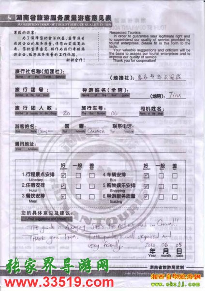 2010年6月5號加拿大一行20位旅游質(zhì)量反饋