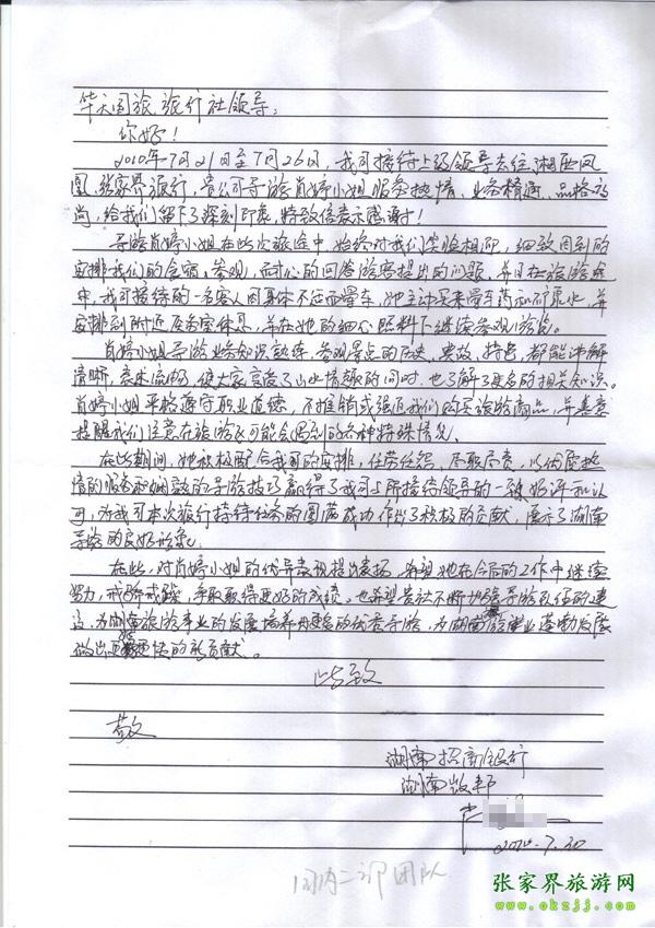 表揚(yáng)信:湖南招商銀行對(duì)我社導(dǎo)游肖婷高度表揚(yáng)