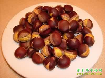 板栗與尖栗(俗名“漩栗”),山毛櫸科,是木本植物,主要含淀粉、糖等,在武陵源區(qū)各景區(qū)都有廣泛的分布。它們是多年生落葉喬木,一般樹高3至5米到10米左右。栗樹春末夏初開花,夏天生長,秋天結(jié)實。果實成球形,外殼帶刺,里面栗子光滑成紫色,所以農(nóng)家有“娘被千針衫,兒穿紫龍袍”的謎語。板栗成熟以后,外殼便自然張開,栗子隨風(fēng)脫落。如在板栗林里撿栗子,倒是一大樂趣。“白露”過后,板栗大量成熟,滿樹的栗球都張開了笑口,一遇到颯颯吹來,栗子便唏唏唰唰唰隨風(fēng)脫落,滾進山溝里或低洼處,如果運氣好,可以撿到一窩一窩的板栗,有時可以撿幾十斤。