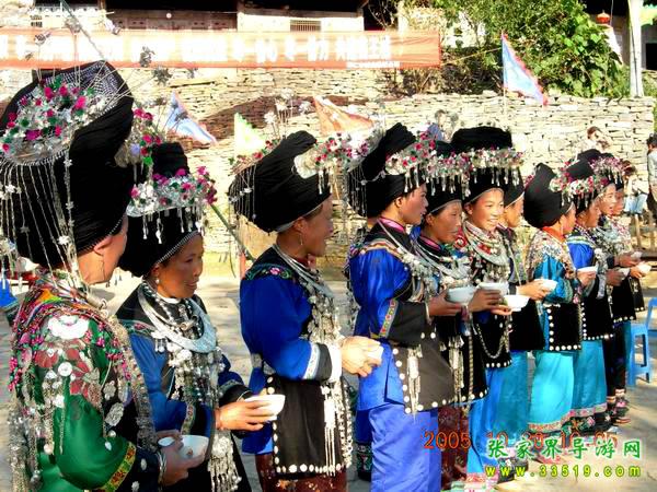 苗王城濃郁的苗族風(fēng)情:情歌、木葉歌、敬酒歌;神秘莫測的絕技上刀山、下火海、撈油鍋、鋼針穿喉、仙人合竹、秤桿提米等;驚險絕倫的高空飛人、熱情奔放的四面花鼓舞,還有奇特的婚嫁習(xí)俗“打花貓”、“揪耳朵”、八人轉(zhuǎn)轉(zhuǎn)秋等等。這是一片神奇的土地、一個神秘的地方,她的每條巷道、每個門、每棵樹都是苗族厚重歷史的一頁,從這里開始,您會讀懂苗王城,同時也會感受到苗族文化的古樸、神奇、博大、精深……。